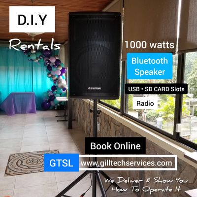 Your Package would include: One (1) 1000 watts Blast King Bluetooth Speaker with USB, SD Card and Aux Ports along with FM Radio and built in Equalizer, Tripod Stand and One (1) Handheld Wireless Microphone included in this Rental COMBO.